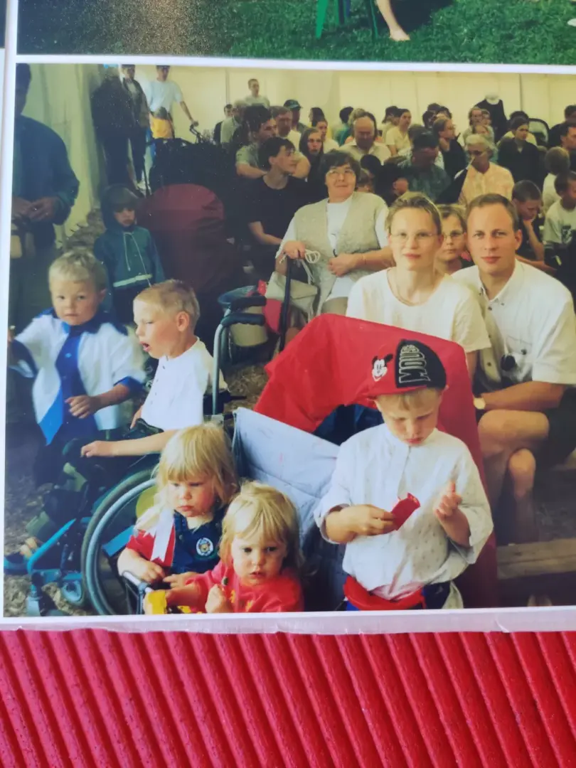 Perheemme kolmen vammaisen lapsen ansiosta olemme yleensä päässeet eturivin paikoille. Muutaman sadan metrin kävelyyn seurateltalle on kuitenkin pitänyt varata aikaa useampi kymmenminuuttinen. Vuosien saatossa iloksemme Risto-Pekka ja Elia oppivat kävelemään rollaattorin avulla. Sitä ennen oli kuitenkin aika, jolloin kaikki tarvitsivat jonkinlaisen kyydin. Kokkolan suviseuroissa Kruunupyyssä emme sopineet enää inva-alueelle, mutta reippaasti viisivuotias työnsi ison veljensä pyörätuolia minun työntäessä vauvan vaunuja, joiden päällä istuimessa istui toiseksi nuorin. Antero työnsi kaksosten rattaita. Äitini ja isäni ihastelivat iloista karavaaniamme. He totesivat, että vaikka Suviseuroissa oleminen vaatii paljon vaivannäköä, se kannattaa, sillä näin lapsille syttyy rakkaus tulla aina Jumalan lasten kokoontumisiin.